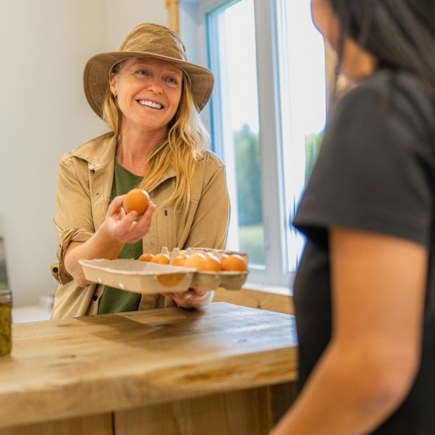 Située à Val-des-Monts, la Ferme Caminoix est une microferme maraîchère certifiée biologique (ÉcoCert) où l’on cultive une grande variété de légumes frais ainsi que des œufs, dans le respect de l’environnement et du bien-être animal. L’agriculture y est pratiquée en harmonie avec la nature : sans engrais ni pesticides de synthèse, et avec une attention particulière portée à la santé des sols, à la protection des cours d’eau et à la préservation des écosystèmes. Sa mission : offrir des produits locaux, savoureux et nutritifs, tout en contribuant à la vitalité agroécologique de la région. Un lieu où fraîcheur, saveurs et durabilité se rencontrent.
