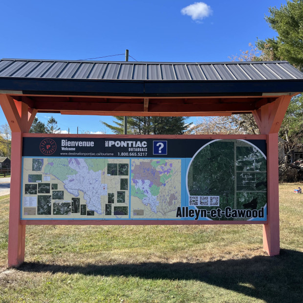 La station d'information de la municipalité d’Alleyn et Cawood accueille les visiteurs dans la MRC de Pontiac, en Outaouais. Il propose différentes cartes: du Québec, de l’Outaouais, de la MRC de Pontiac et de la municipalité, avec la localisation des services locaux, des commerces, de l’hébergement, des restaurants et des principaux attraits. Vous y trouverez un présentoir pour dépliants touristiques (régional, local, culturel local, autres). Les numéros d’urgence y sont inscrits. Enfin, vous avez accès à un téléphone et à des toilettes publiques (bureau municipal) et à une source d’électricité. Ce lieu est également accessible aux personnes à mobilité restreinte.